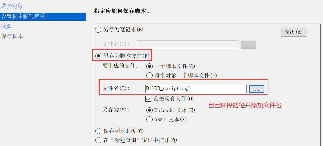 勾选另存为脚本文件,然后自行选择路径并添加文件名,如下。